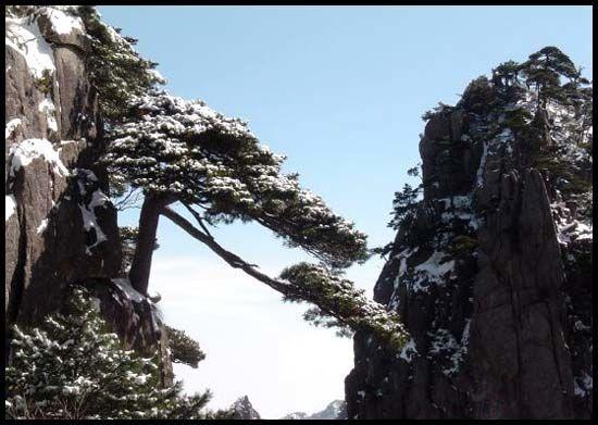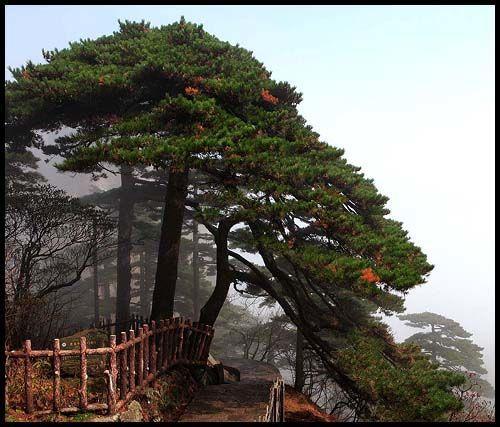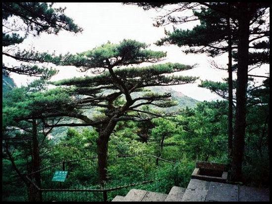 十大名松之一的迎客松是黄山奇松之首,列入世界遗产名录。该树地处海拔1680米处,树高10.1米,胸径65.6厘米,枝下高2.5米。