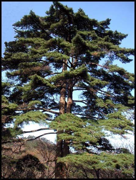列入世界遗产名录。位于始信峰,5根主侧根裸露土表,粗大,扇形伸张,似苍龙之爪,苍劲有力,深扎岩中。树高12.5米,胸径45.5厘米,冠幅12米×5米。树龄约300年。
