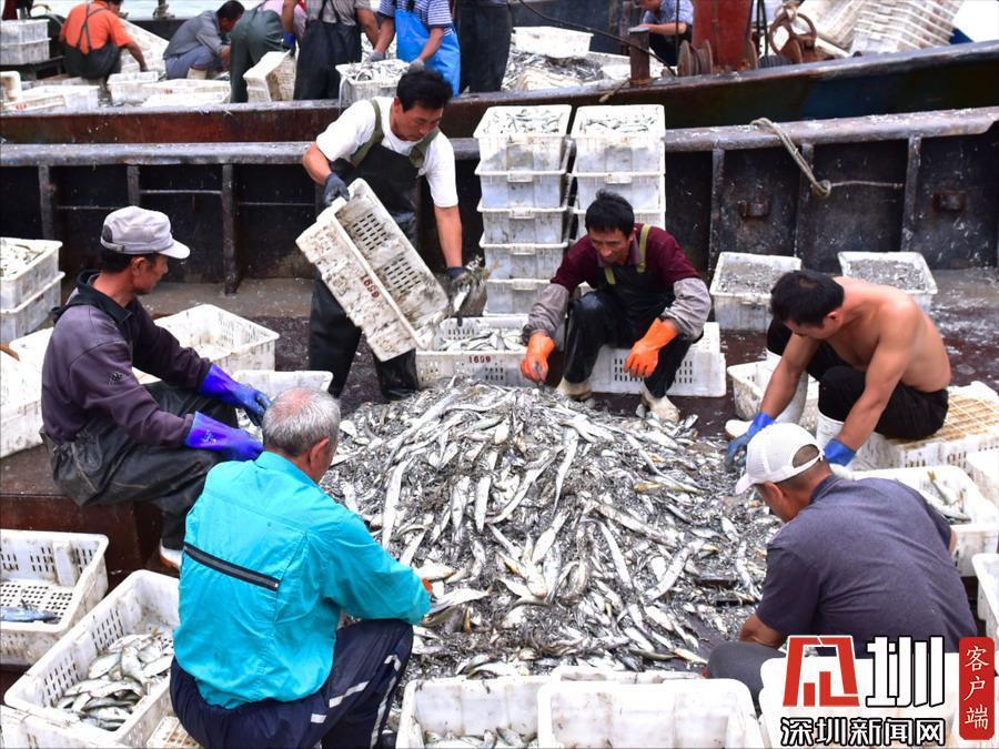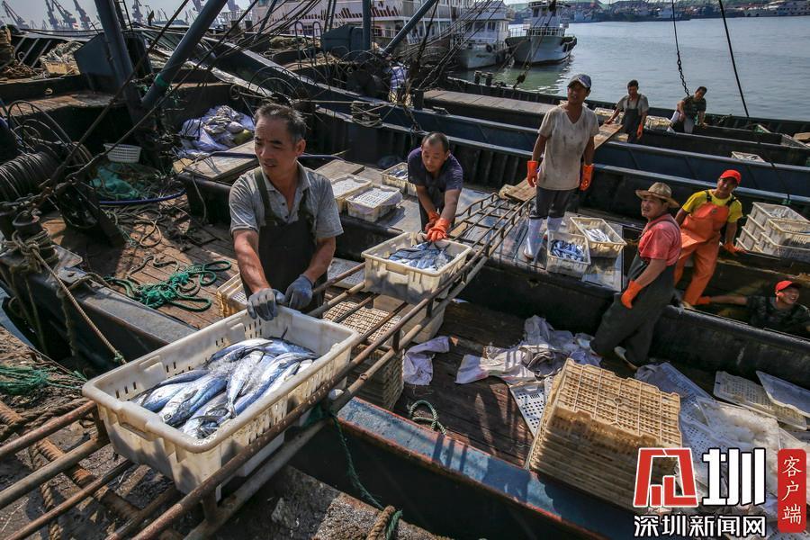 连日来,山东日照岚山中心渔港迎来秋捕高产期,鲅鱼、带鱼、鲳鱼、螃蟹等种类丰富的海产品大量上岸,渔民抓紧时间分拣装运,保障节日市场海鲜供应。
