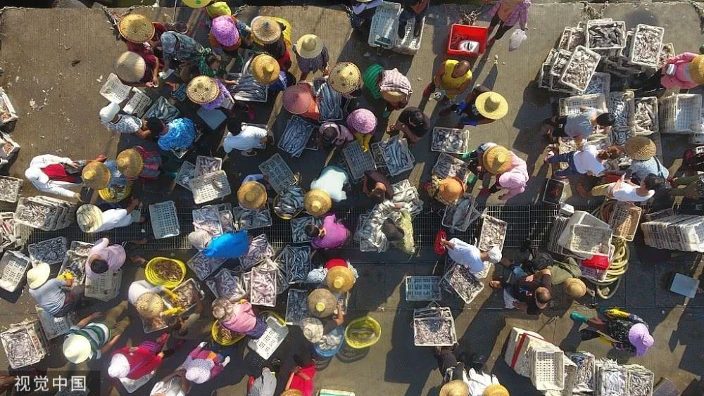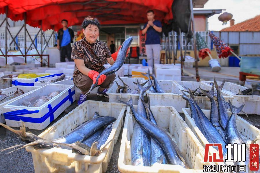 一筐筐的刀鱼、鲳鱼、鲅鱼,很快被运输到临近的兴海门海鲜批发市场,市场里人头攒动、熙熙攘攘,就像赶年集一般,一派购销两旺的景象。