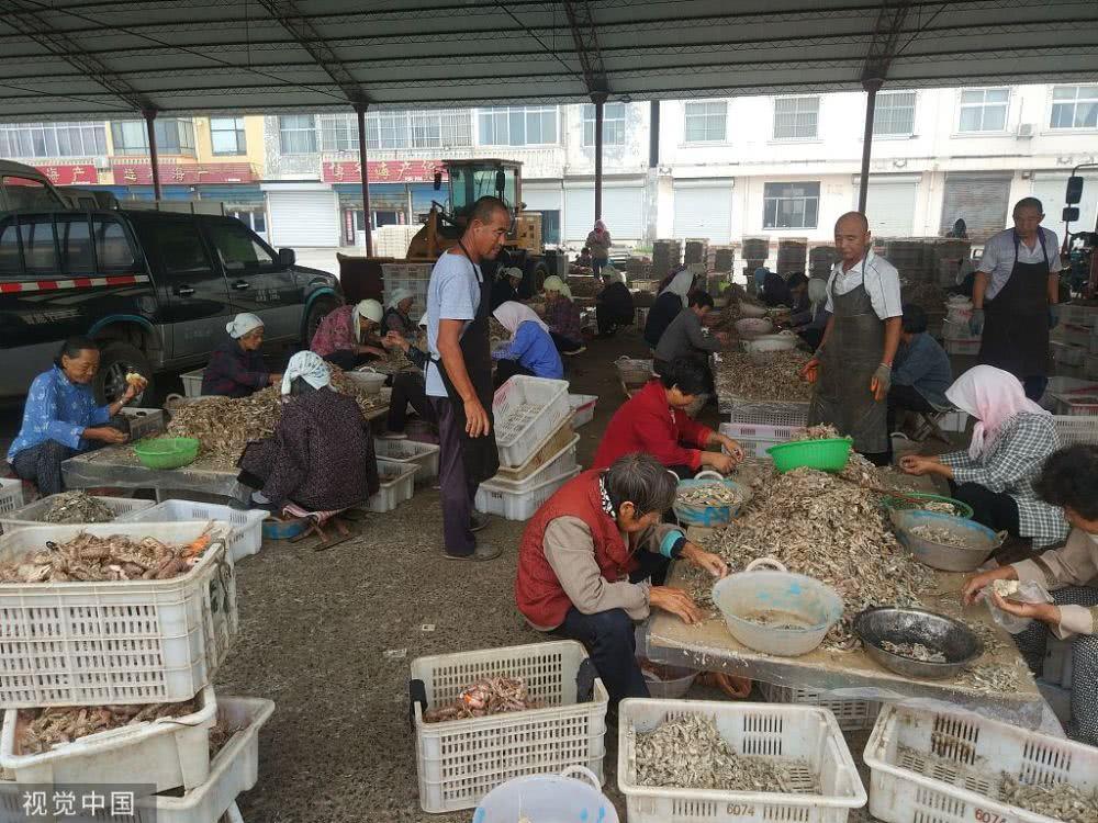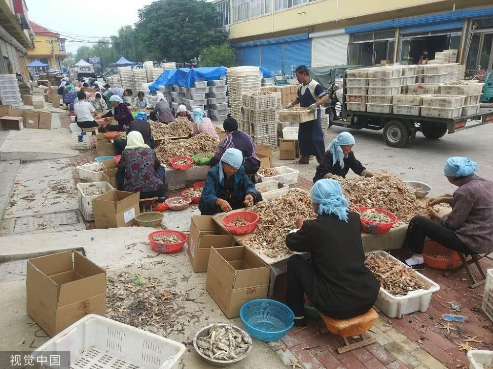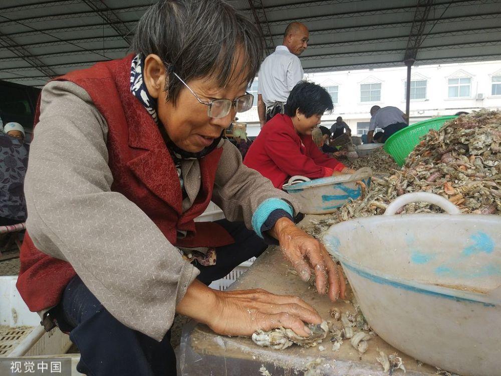 海产丰收的季节还催生了当地独特的工种,这就是分拣工,不少农村人在这里靠着分拣海产日赚几十元。