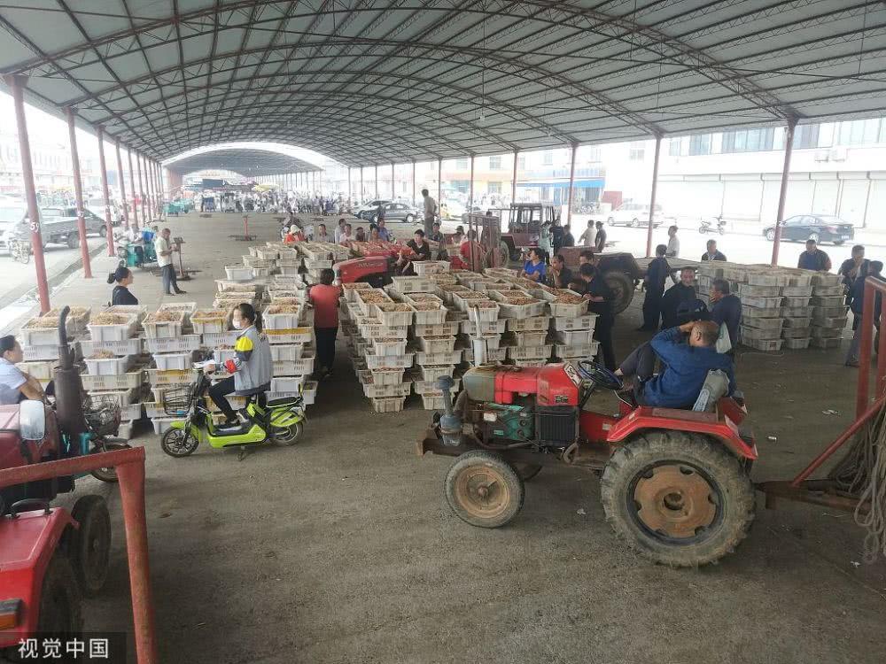 2019年9月13日,农历八月十五中秋节,山东滨州沾化区鲁北海产品批发市场,村民正在分拣货物。