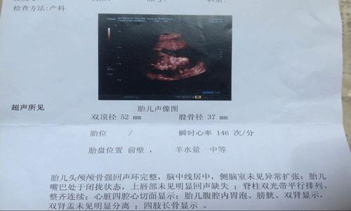 其中有一个是说双顶径和股骨颈的长度:双顶径减去股骨颈的差值小于2cm的话可能是女宝,大于2cm有可能是男宝。下图是52-37=15,这就有可能是女宝哦。