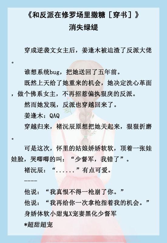 《我有美颜盛世》《这个恶毒女配我当定了》《和反派在修罗场里撒糖[穿书]》《修罗场又又又翻车了[穿书]》《我靠cp来修仙[穿书]》