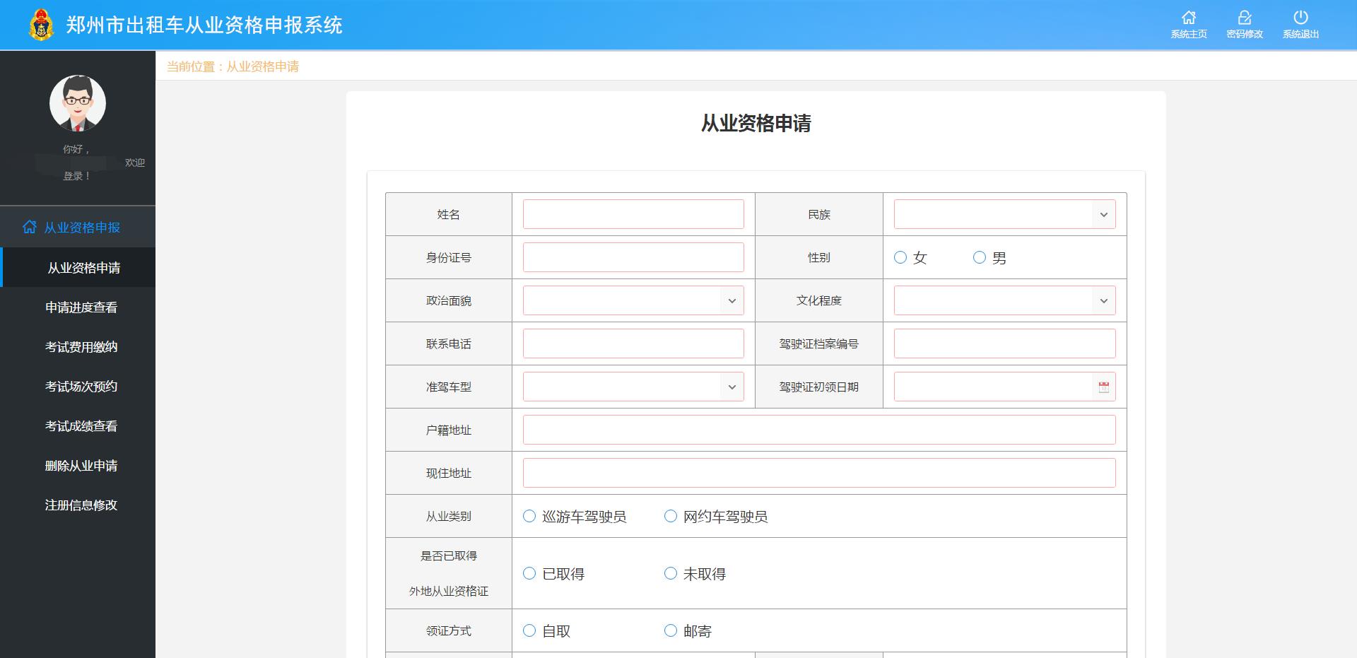 点击从业资格申报,填写个人信息,从业类别选择 网约车驾驶员