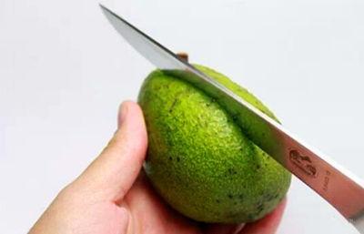 1.用水果刀切到牛油果的核,绕着核切一圈。