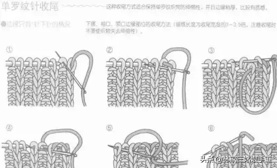 【收针】用单罗纹针收针法收针,可以用棒针直接收,也可以用缝针收。