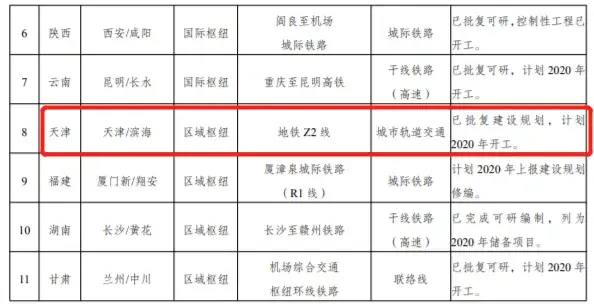 日前,国家发展改革委发布了《关于促进枢纽机场联通轨道交通的意见》,将加强枢纽机场与轨道交通的互联互通。《意见》列出了11个重点项目清单,天津地铁Z2线列入其中。