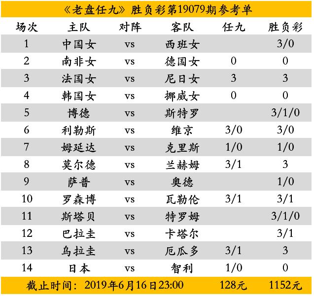 欢迎来到唯彩看球老盘任九专栏,今日带来任九19079期推荐。