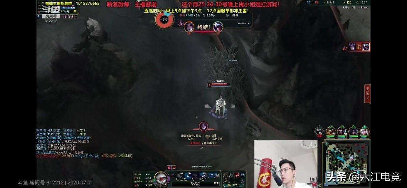 他频繁的游走让对面玩得很难受,对面追又追不上,一不小心又被这男刀在草丛偷掉了。于是对面决定,一起来抓他。