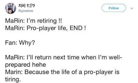 之后的Marin,从LGD再度转会至TOP。但此时的他如同大多数来到LPL的韩援一样,泯然众人。最终Marin与去年的转会期离开TOP。消失在众人的视线中。并在近日的直播宣布退役。