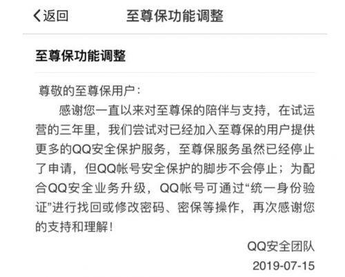7月17日消息,日前,腾讯QQ安全团队发布至尊宝功能调整通知,通知显示,在试运营三年之后,至尊宝服务已经停止申请。
