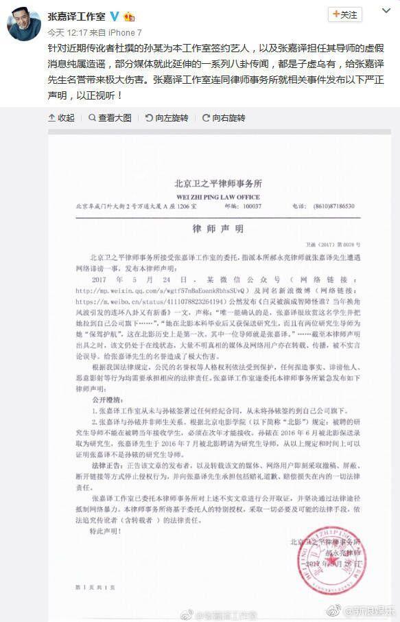 张嘉译发声明称与孙某不是师生关系,卓伟去年爆料时为啥不出?