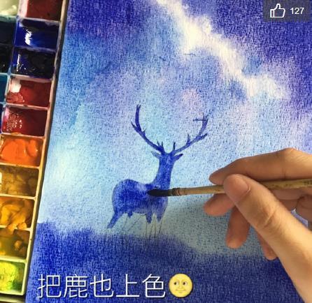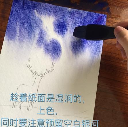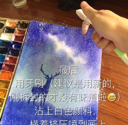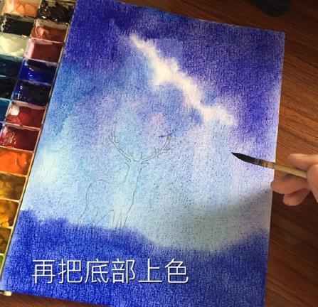 星空鹿水彩画的过程