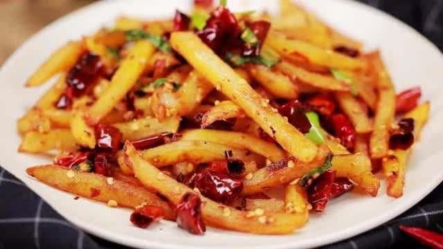 干煸土豆条就做好了。外焦里嫩,色泽红亮,味道浓郁,麻麻辣辣的特别好吃。