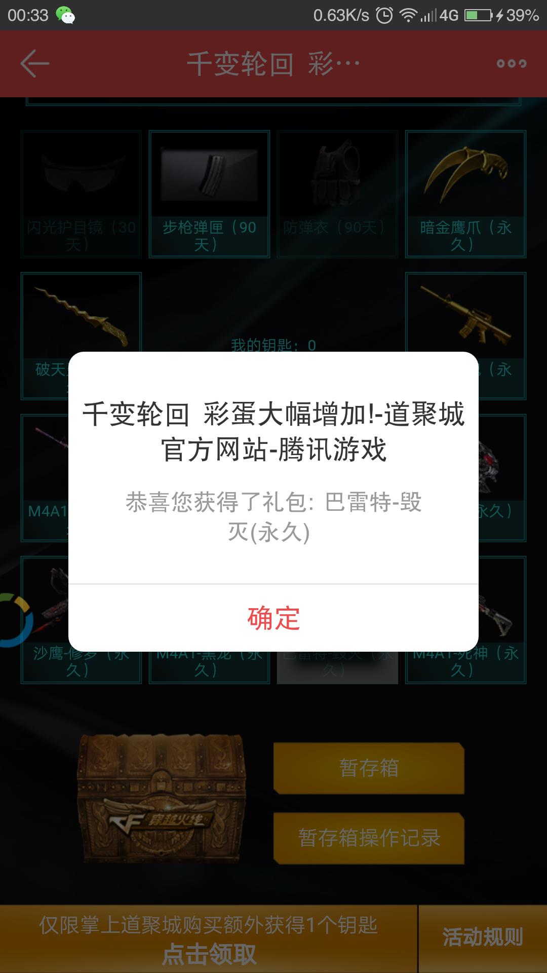 看到论坛里好多坛友说这次概率很高,都是麒麟刺,屠龙的刷,就拿10块钱去试一下,刚开始前面两下都是些护目镜和烟雾头,已经有些死心了,刚好分解可以再抽一次,好怕下次抽的是弹夹,谁知道看到永久两个字。哈哈,祝各位小伙伴都中大奖。