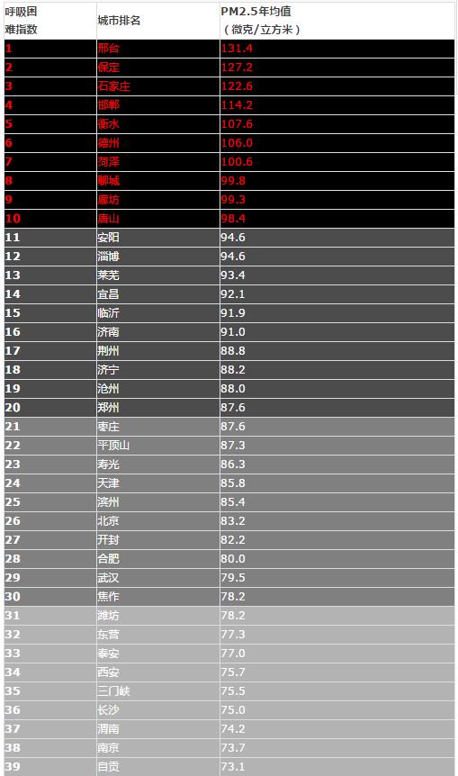 中国190座城市雾霾排名出炉 你的城市还好吗?