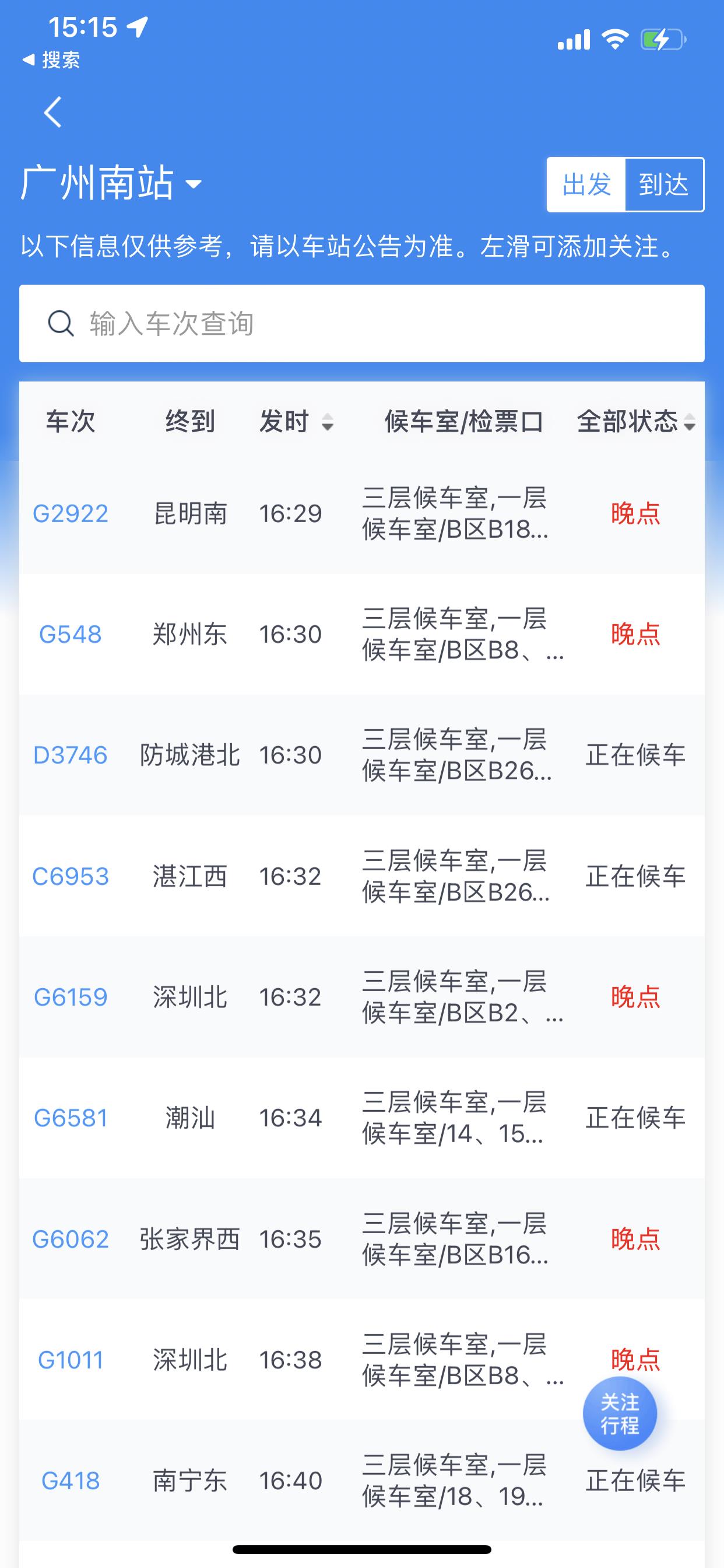 12306:途经广州南站的部分列车出现不同程度晚点
