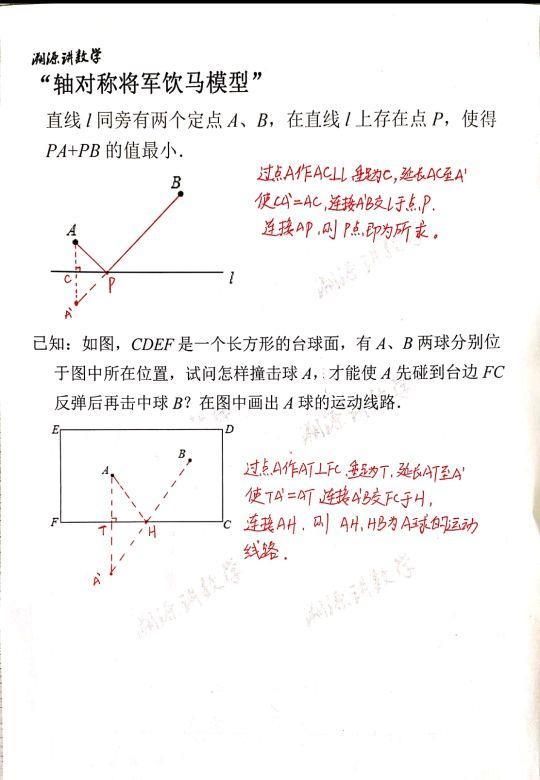 将军饮马问题是初二重要的几何模型,是一种用几何思路求最值的题型。