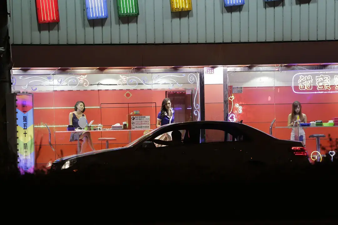 他们出身各异,唯一的共同点就是缺钱,槟榔西施们三三两两坐在玻璃屋内,一个冰柜,一张桌子,就可以开门做生意。