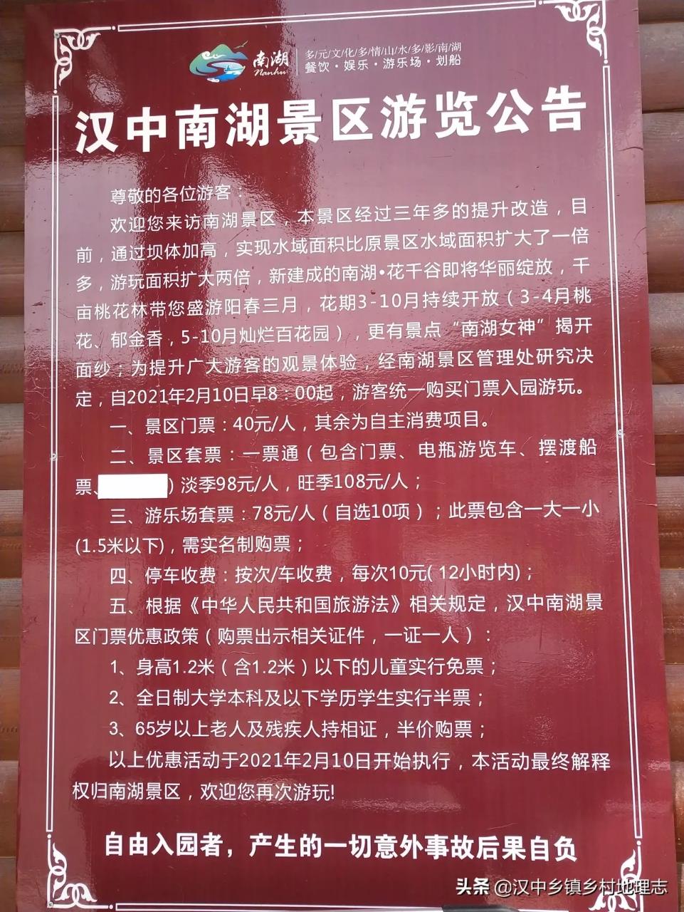 如今的南湖风景区游览公告