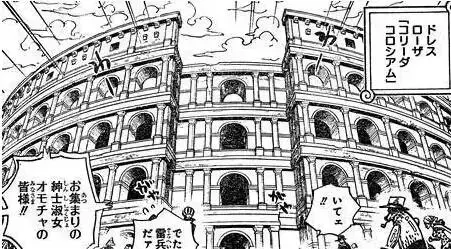 在德雷斯罗萨有一个斗技场,因为本次大赛后的奖品,竟然是艾斯的烧烧果实,为了不让艾斯的能力落入他人手中,路飞前往了「斗牛角斗场」
