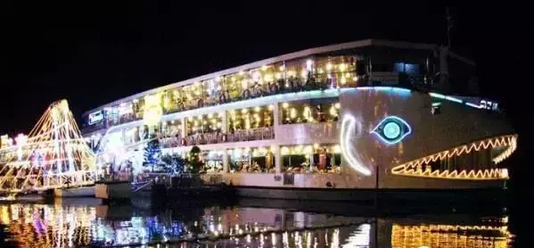现实世界的景点:越南Saigon Restaurant Cruise Ship on Saigon river