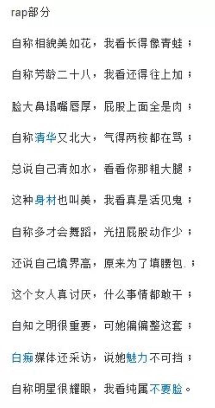 这首歌的rap部分,是实打实的人身攻击了: