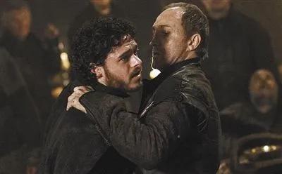而北境战俘暴动之时,卢斯•波顿趁乱与被关押的北境俘虏里应外合,夺下了赫伦堡,在波顿这里,二丫知道了临冬城沦陷,弟弟们都被害了!而卢斯•波顿也表示,自己觉得罗柏已经败了!二丫偷偷找到詹德利和热派,三人趁夜诱杀了守卫,离开了赫伦堡!途经屈膝客栈之时,面包学徒热派决定留下做面包师,而另外二人落到了兄弟会的手里,而在兄弟会中,二丫遇见了以前的熟人——临冬城马房总管胡伦的儿子哈尔温,这支队伍原本就是劳勃和奈德麾下,劳勃死后,奈德被害,这支队伍便自发形成了兄弟会,保护当地的百姓,并且不时的偷袭骚扰兰尼斯特的军队,在当地很受百姓拥戴!在来到兄弟会大营之后,二丫遇见了她的头号敌人——猎狗桑铎,猎狗因惧怕火焰而临阵脱逃,正在被通缉!二丫指控猎狗犯了谋杀罪,被兄弟会要求“比武审判”,结果猎狗打赢,获得释放。二丫不服这样的结果,对兄弟会也很失望,可是二丫的另一个小伙伴詹德利却想留下来为他们打铁!二丫气不过,也因不知道何时才能与母亲汇合而感到失落无望,一气之下从兄弟会跑了出来,却被一直藏在暗处的猎狗抓住,带上了马!好在猎狗无心杀她,只想用她向她母亲换取丰厚的酬劳,可惜当二人赶到孪河城时,恰逢血色婚礼刚刚结束!(二丫的哥哥罗柏因娶了战地护士而毁了与佛雷家的婚约,在婚礼上被佛雷家背叛,二丫的母亲凯特琳、大哥少狼主罗柏、大哥的冰原狼灰风、战地护士大嫂以及腹中的胎儿全部被害,事后罗柏还被插着狼头游街,属实是惨!)