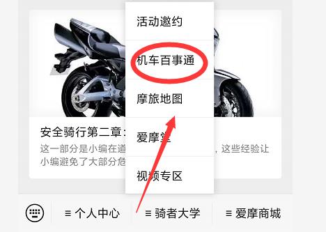发表地址:关注中骑联重机组微信公众号,在底部菜单“骑者大学”--点击“机车百事通”进入底部点击“发表”。