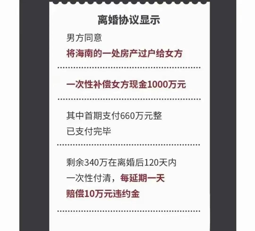 在霍欣欣的强烈要求,威逼下两人签订了离婚协议。并且要求苏某赔偿她1000万的精神损失费用。