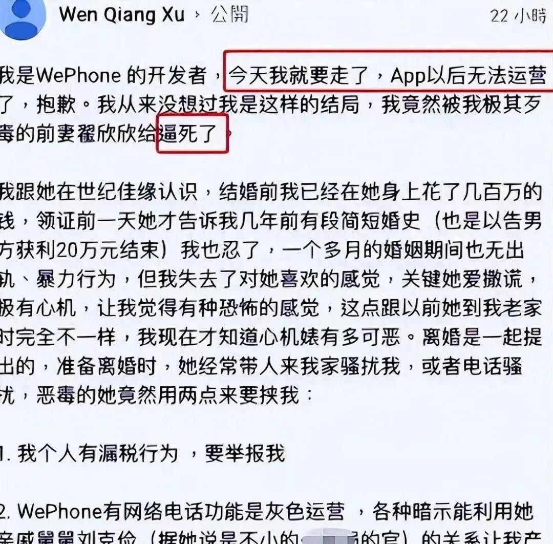 苏某把自己的钱都给霍欣欣后。不堪压力选择跳楼,并留下遗书称:自己在霍欣欣的不断索取后,公司资金链已断裂,不堪压力,选择结束一生!