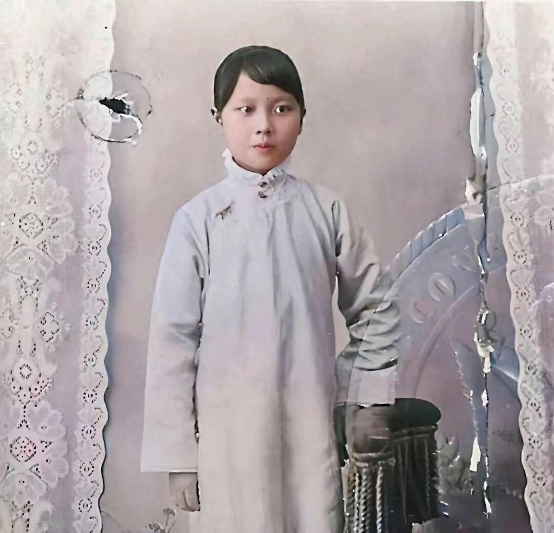 1906年,宋美龄的一张罕见照片。这年宋美龄9岁,还处在童年时期,她身穿中国传统服装,一双大眼睛,圆圆的脸带,看上去还挺可爱。
