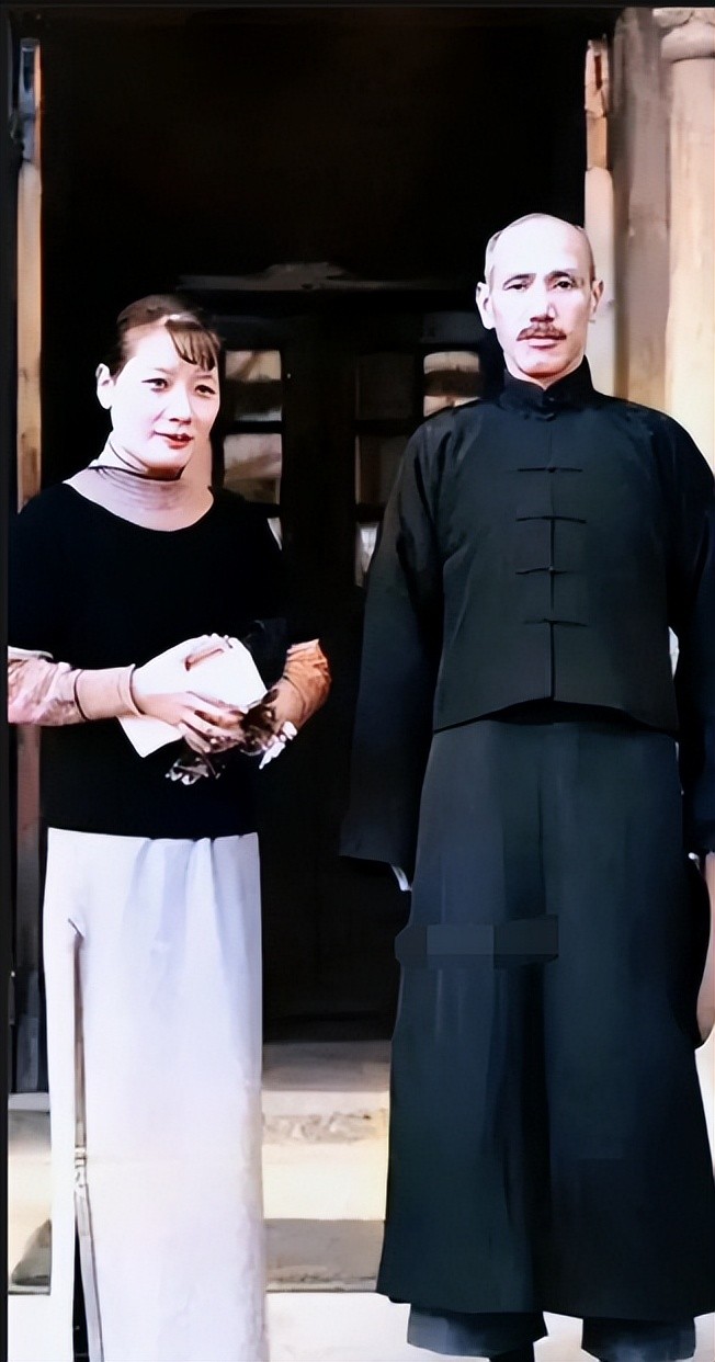 1927年,宋美龄和蒋介石的结婚照片。这年宋美龄30岁,蒋介石40岁,宋美龄身穿白色婚纱,优雅漂亮,蒋介石身穿西装,表情看上去有些滑稽。