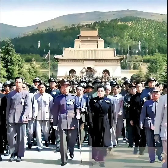 1946年,宋美龄和蒋介石带领国民党要员祭拜中山陵的罕见合影。经过长达14年的浴血奋战,中国取得抗日战争的胜利,蒋介石决定把首都从重庆迁南京,并祭拜了孙中山先生。