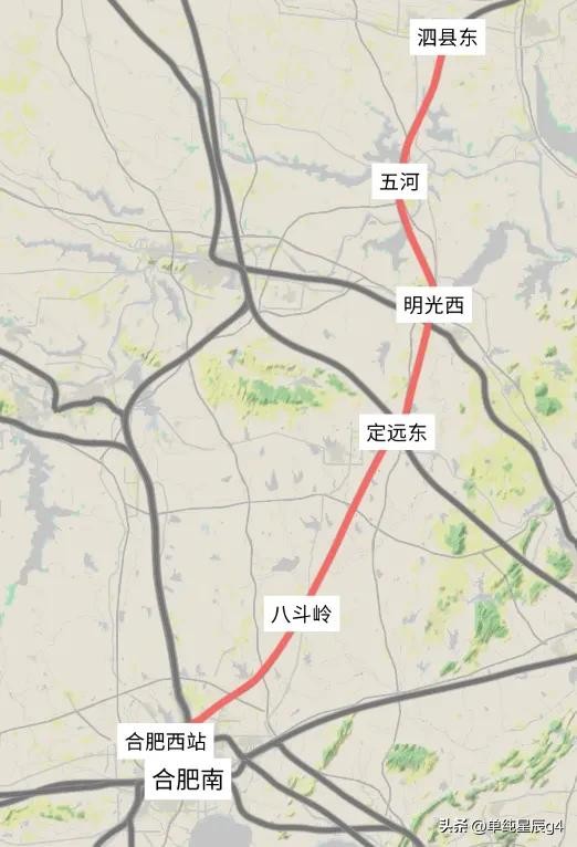 新建的合新高铁安徽(合肥至泗线)段,全线设置车站6座,合肥西站,八斗岭站(越行),定远东站,明光西站,五河站,泗县东站。