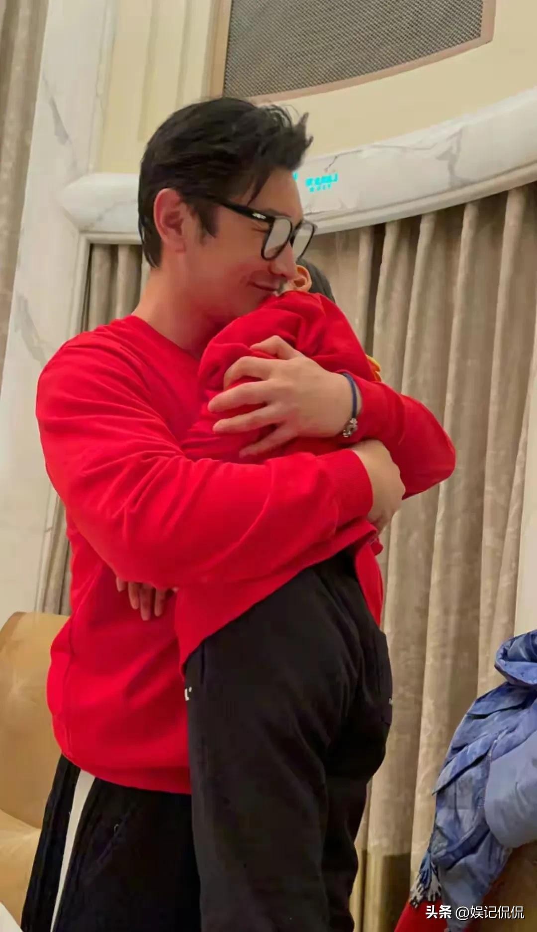照片中,46岁的黄晓明,眼神宠溺的对着儿子亲亲抱抱举高高,爸爸力十分爆棚,父子俩穿着同款红色卫衣,新年氛围满满,看起来相当的喜庆红火。