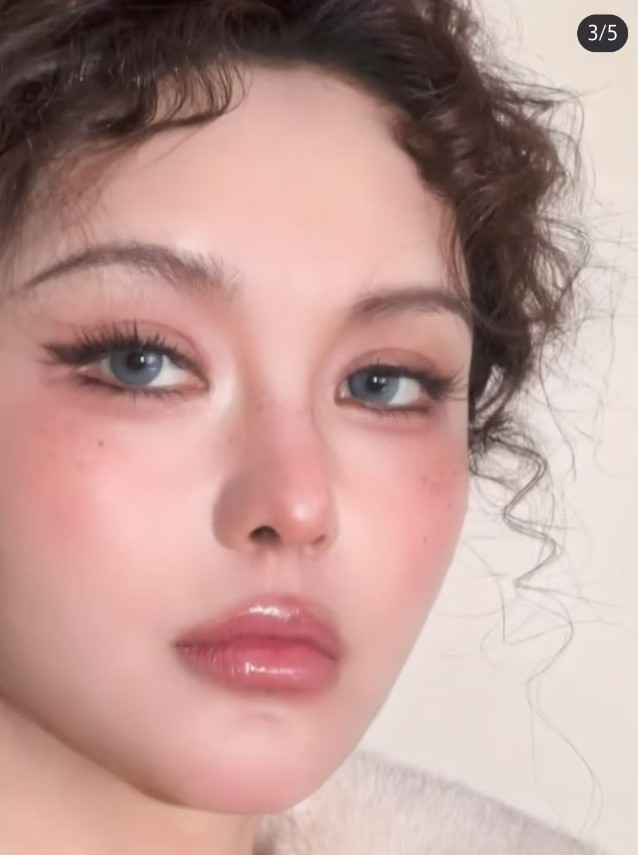 在零修图视角里,周扬青的脸上看不到丝毫瑕疵,甚至她还给自己化了一个雀斑妆,分外俏丽。周扬青本身的五官就有些许混血感,而在做妆造的时候她还戴上了异色美瞳,配上她的卷发发型和颇为欧美的妆容,确实是像极了漂亮的洋娃娃有木有。