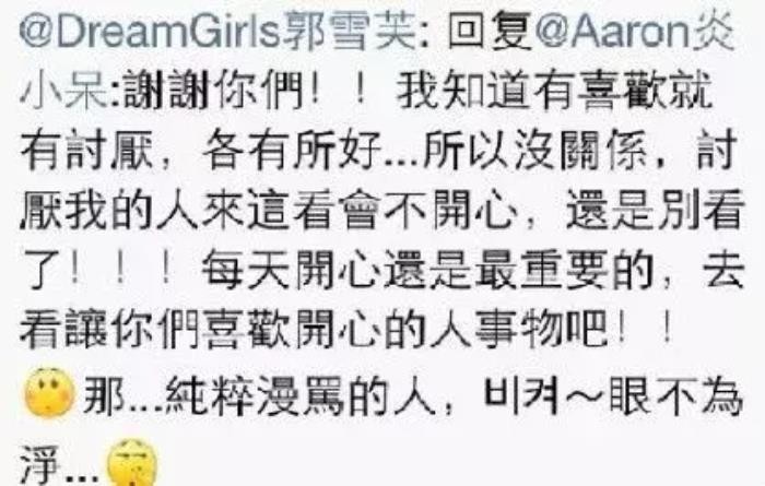 哦对了,郭雪芙在2010年还和宋米秦、李毓芬组成了女子组合Dream Girls,正式进军歌坛,不过比起音乐作品,这三位的撕战显然更出名。