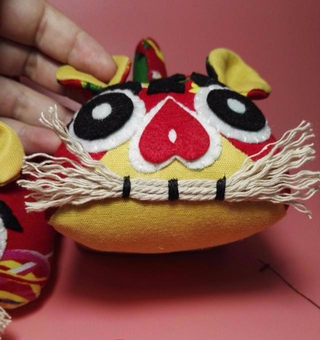 缝制布老虎的制作方法7、最后给布老虎装饰脸面,缝上眼睛、鼻子,用毛线做胡须,再把耳朵缝到头上。 制作布老虎的材料及工艺是各不相同的,我教大家的这种方法是比较简单的,您可以依据这种方法做出更夸张的造型,还可以选择更艳丽的布来做可爱的布老虎。