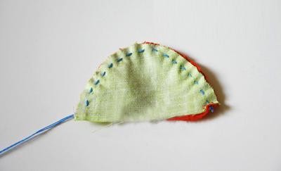 接下来是缝制肚子的一片,先缝一边