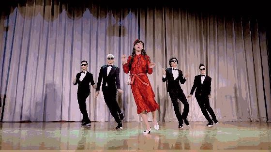男生反串舞蹈,如《朱碧石舞蹈》非常的洗脑和搞笑。仿妆仿人,加上服装的搭配,绝对是年会节目上一道亮丽的风景线。