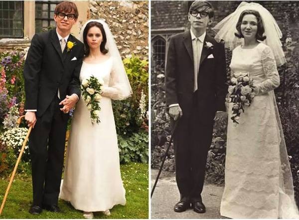 霍金本人虽然没出演《万物理论》,但他将自己真实的“声音”(电脑发声器)用在了影片当中,而片中用到的道具包括女王荣誉勋章和署名论文等也都是由霍金本人提供的。霍金本人在观影后也被影片所打动而流泪。