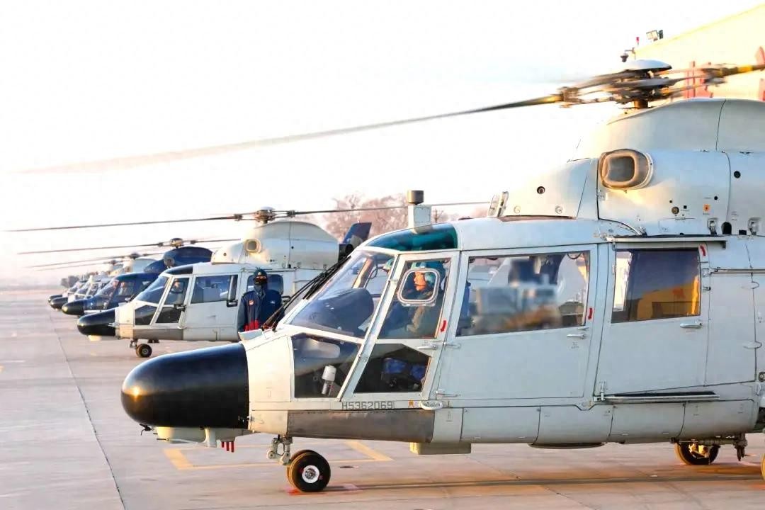 近处是直9C,后面是SA565“黑豹”,更远处是直9教练型