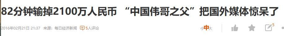 每日经济新闻:82分钟输掉2100万人民币 “中国伟哥之父”把国外媒体惊呆了--2016-02-21