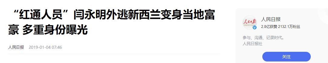 人民日报:“红通人员”闫永明外逃新西兰变身当地富豪 多重身份曝光--2016-11-12