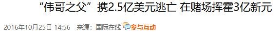 国际在线:“伟哥之父”携2.5亿美元逃亡 在赌场挥霍3亿新元--2016-10-25