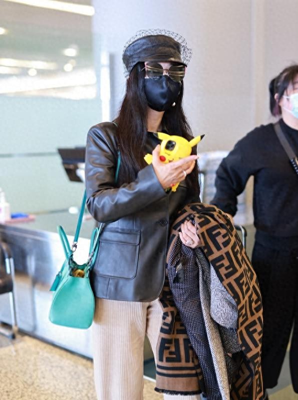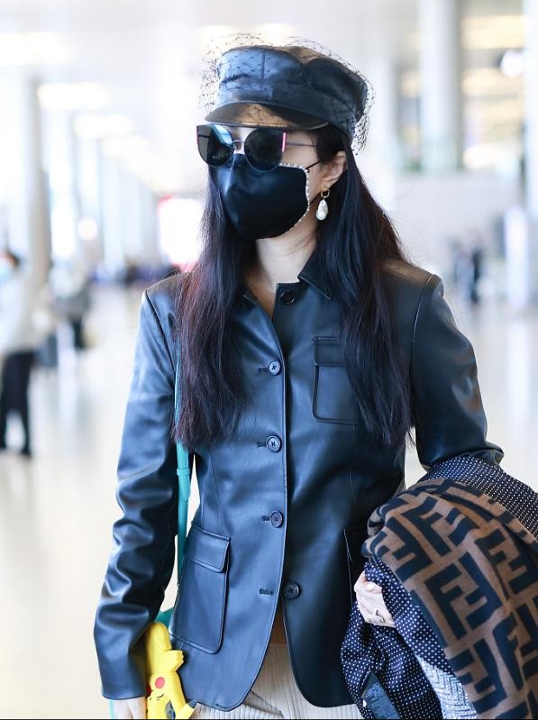 39岁范冰冰现身,皮衣配蕾丝皮帽超潇洒,戴镶珍珠口罩长腿吸睛