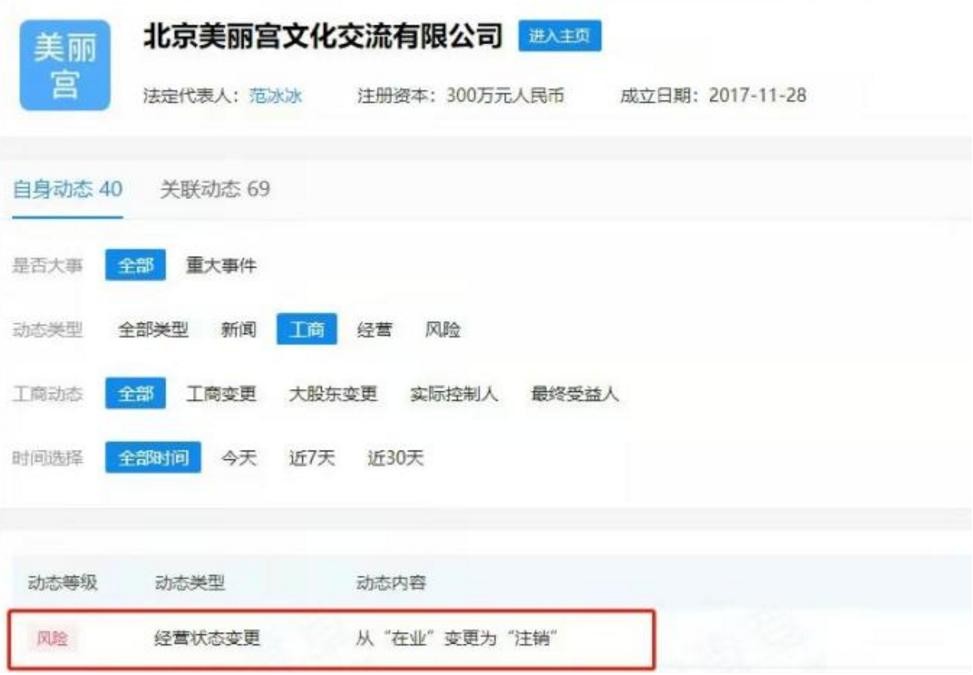 不过,值得注意的是,范冰冰旗下控股的一家公司的经营状态从以前的"在业"变更为"注销",对于实际控股高达98%的范冰冰来讲,目前的事业版图可能依旧处于稍稍停滞状态。