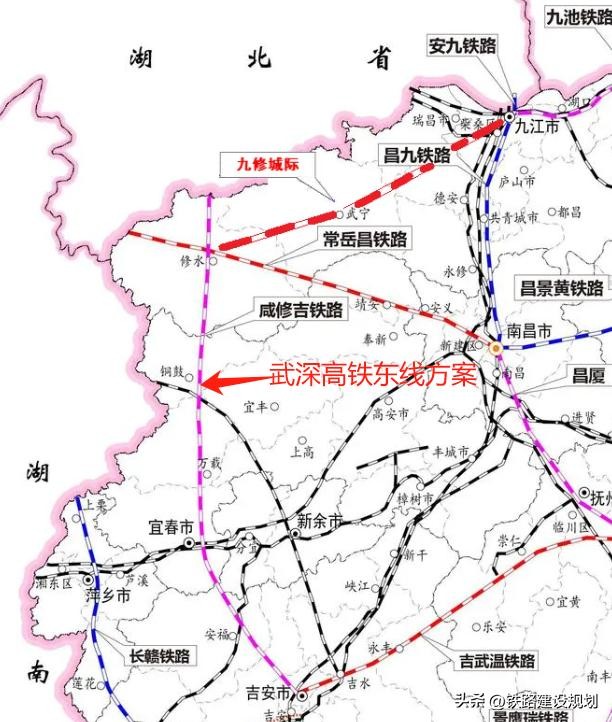 根据国家中长期铁路规划,武深高铁有两种方案,即东线方案(江西方案)和西线方案(湖南方案) 。最新消息,将采用西线方案,表示该高铁将途经平江、浏阳等地,江西修水等地出局。西线方案将与京广高铁平行,可以分担南北走向的旅客客流,缓解京广高铁运力不足的压力。